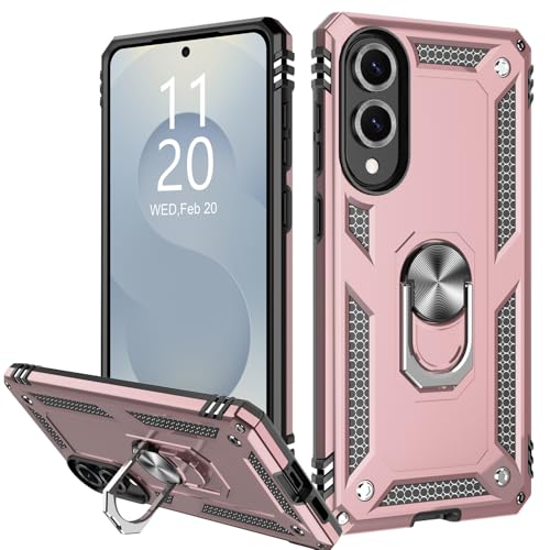 IKAZZ for Galaxy S25 Edge Case,Military Grade Shockproof Heavy Duty Protective Phone Cover Pass 16ft Drop Test with Magnetic Kickstand Car Mount Holder Rose Gold