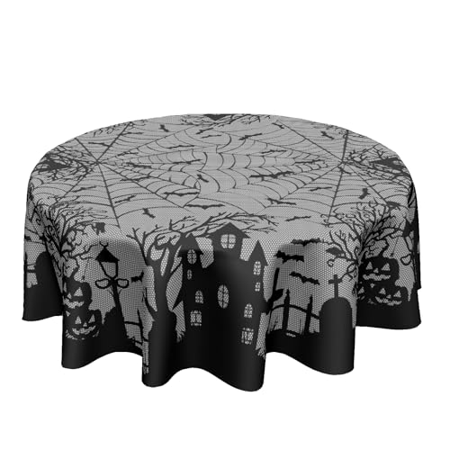 Kawani Halloween Round Tablecloth 60 Inch Spooky Pumpkins Castle Bats Spider Web Table Cloth Black Gray Halloween Holiday Polyester Table Cover for Kitchen Dining Room Indoor Outdoor Home Decor