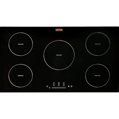 VEVOR Electric Cooktop, 5 Burners, 36'' Induction Stove Top, Built-in Magnetic Cooktop 9200W, 9 Heating Level Multifunctional Burner, LED Touch Screen w/Child Lock & Over-Temperature Protection