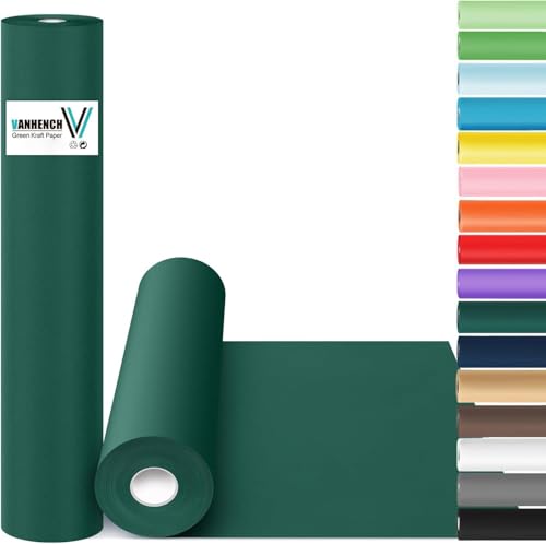 Vanhench 15"x 1200"(100') Green Wrapping Paper Roll, Solid Color Art Kraft Craft Paper for Christmas, Wedding, Birthday, Father's Day Gifts Wrapping, Poster Bulletin Board, Moving & Shipping