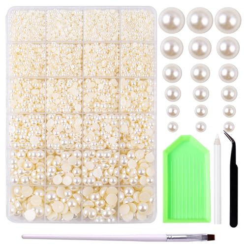 ISYINGTW 7460Pcs Creamy White Pearls Rhinestones, Flatback Pearls for Crafts Tumblers Shoes Nails Face Art, Assorted Size 3/4/5/6/8/10mm Craft Half Pearls(Creamy White)