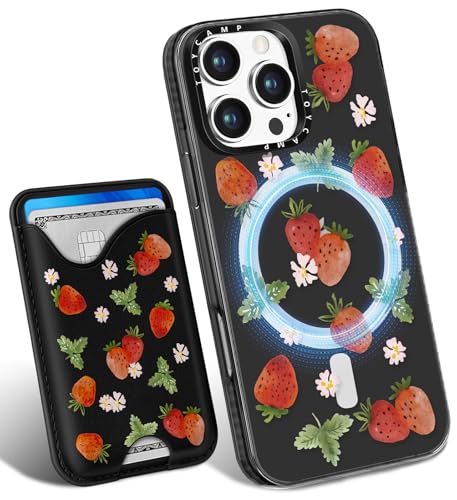 Toycamp for iPhone 15 Pro Max Case - Compatible with Magsafe Credit Card Holder Wallet Magnetic Girls Cute Girly Teens Kawaii Unique Strawberry Black Design Phone Cover for Apple 15 Promax 6.7"