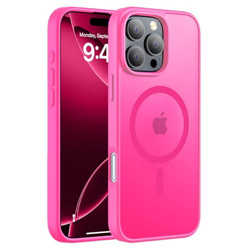 Hualele Magnetic for iPhone 16 Pro Max Case,Compatible with MagSafe, Military Grade Dropproof Translucent Matte Hard Back Soft Edge Slim 16 Pro Max Case,Hot Pink
