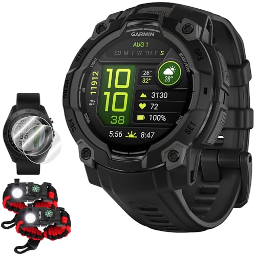 Garmin Instinct 3-45 mm Outdoor GPS Smartwatch, AMOLED, Black with Black Band 010-02936-00 Bundle with Deco Essentials 2X Screen Protector & 2X Tactical Emergency Paracord Bracelet