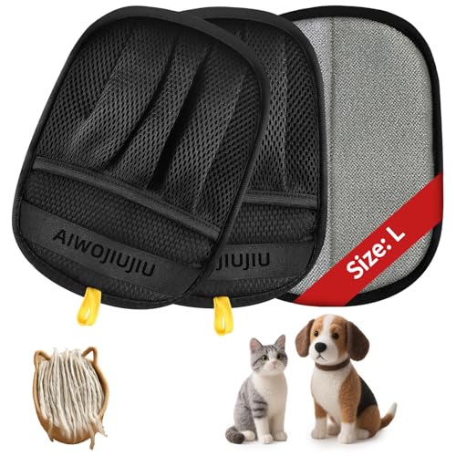 Aiwojiujiu 2 PCS Pet Hair Removal Glove for Cats & Dogs, Newly Pro Five-Finger Electrostatic Pet Hair Remover Gloves, Magic Brush Pet Hair Removal Tool (Black, L)