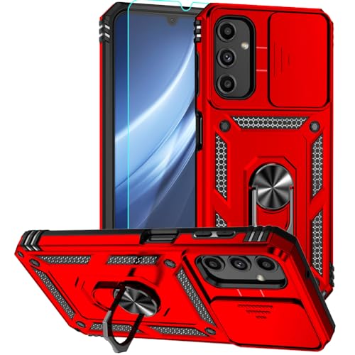 for Samsung Galaxy A25 5G Case, Soft Silicone Rubber Bumper Hard Plastic Phone Case with [Sliding Camera Lens Cover] [360° Rotatable Kickstand Ring] [HD Screen Protector] for Galaxy A25 5G Red