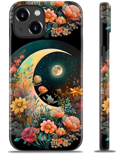 LUXMERRY for iPhone 13 Case Cute - Wireless Charging Compatible - Dual-Layer Hard Shell + Silicone Cover - Protective Phone Case Aesthetic Trendy Designs for Women - Blooming Flower Moon