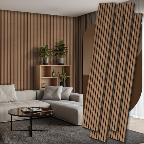 4 Pack Wood Panels for Wall, 106.3" × 11" Wood Slat Acoustic Panels for Wall, Soundproof Panels, 3D Fluted Panels for Interior Wall Decor (Walnut)