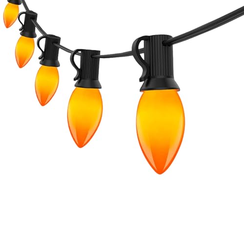 Romasaty C9 LED Orange Halloween Lights, 25FT Halloween C9 String Lights with 27 Orange LED Bulbs, Hanging Decoration Light for Outdoor Indoor Patio Home Party Garden Yard-Black Wire