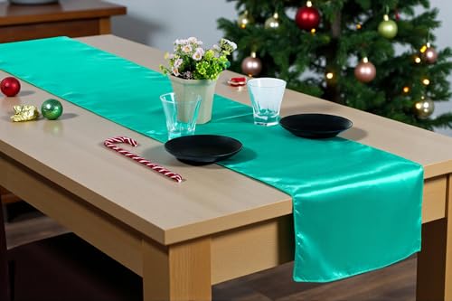 MDS Christmas Satin Table Runners - 10 Pack, 12 x 108 Inches - Bright Silk Sateen Table Decor for Harvest Dinner, Thanksgiving, New Year Party, Wedding, Holiday Banquet Dining Décor - Sea Green