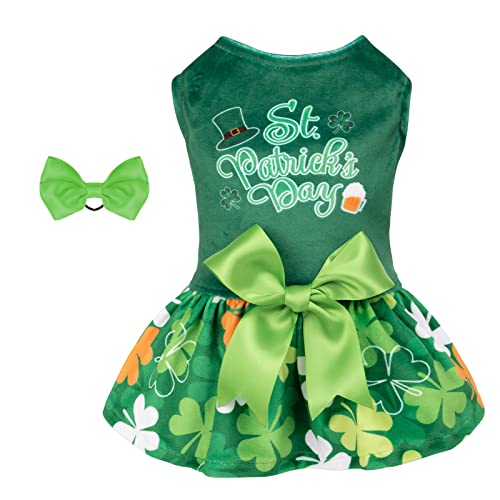 CuteBone St.Patrick's Day Dog Green Dress Velvet for Small Dogs Girl Puppy Dresses Clover Dog Clothes CVA13L-D