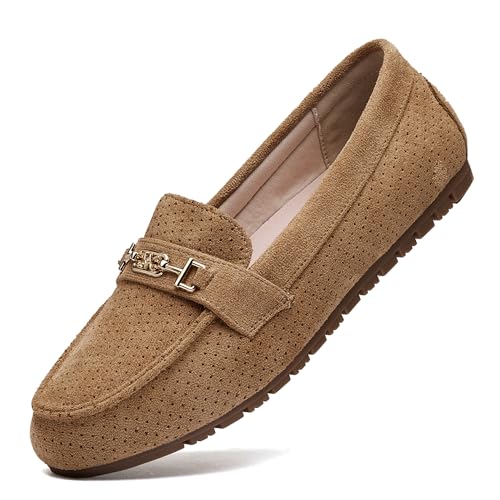 DeYashopin Women's Loafer Shoes Leisure Slip On Work Shoes Comfort Walking Flats Tan-tan 11 Wide