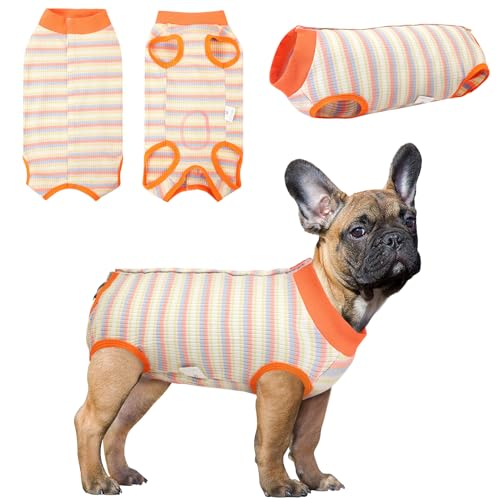SAWMONG Recovery Suit for Dogs Female Male, Cotton Breathable Dog Onesie After Surgery Spay Neuter, Professional Pet Surgical Suit, Substitute E-Collar Cone (Orange Stripes, 2XL)