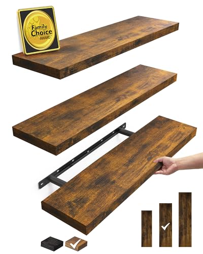BAYKA Floating Shelves for Wall, 22.5 Inch Rustic Wood Wall Mounted Shelving for Bathroom, Bedroom, Living Room, Kitchen & Book, Hanging Display Decor Shelf with 22 lbs (Rustic Brown,Set of 3)