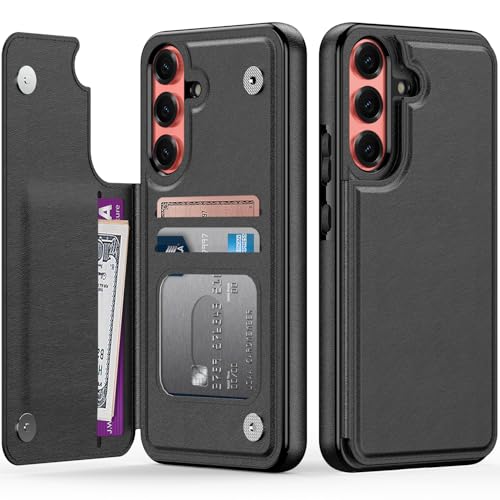 FUNMIKO for Samsung Galaxy S25 Plus Wallet Case with Card Holder, RFID-Blocking, Military-Grade Protection & Floral Animal Design, Magnetic Closure with Leather Stand - Black