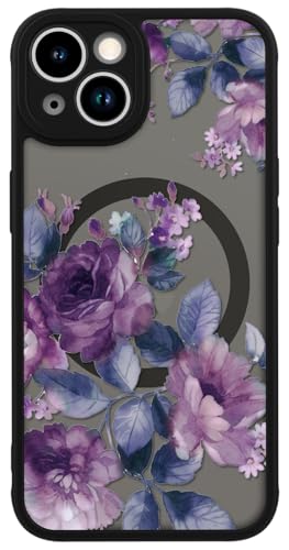 LUHOURI for iPhone 13 Case Cute - Wireless Charing Compatible,Trendy Floral Design for Women Girls,Military-Grade Shockproof Not-Slip Matte Phone Cover, Elegant Purple Floral