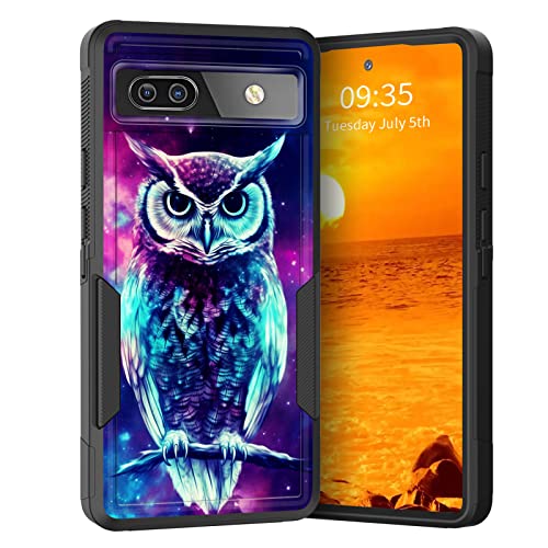 KJFHDJFDH for Pixel 7A Case,Dual Layer Hybrid Heavy Duty Rugged Shockproof Hard PC +Soft Silicone Protective Case for Google Pixel 7A 5G 6.1'',Galaxy Owl