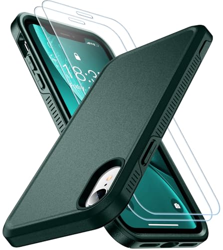 SPIDERCASE for iPhone XR Case, [10 FT Military Grade Drop Protection] [Non-Slip] [2 pcs Tempered Glass Screen Protector] Shockproof Airbag Cushion Protective Case for iPhone XR 6.1” (Dark Green)