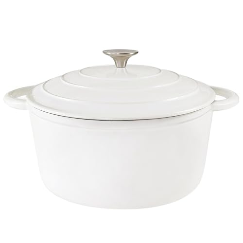 Dutch Oven,Cast Iron Dutch Ovens,Dutch Oven Pot with Lid,3 QT Enamel Dutch Pot,Dutch Ovens with Dual Handles,Cast Iron Pot for Braiser,Cooking,Gifts for Family,White