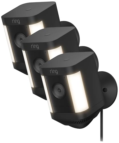 Ring Spotlight Cam Plus, Plug-In | Home or business security with HD video, Two-Way Talk, Color Night Vision, and Security Siren (2022 release) | 3-pack | Black