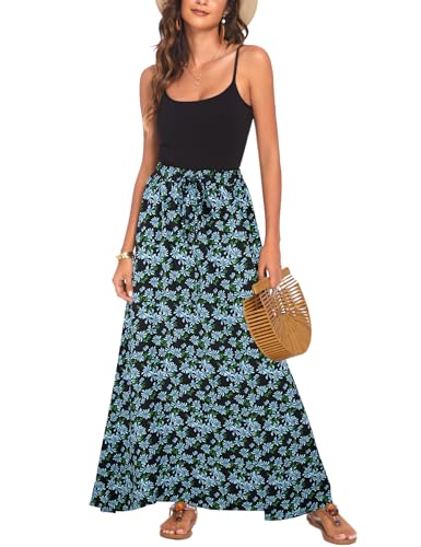 Bluetime Women Flowy Long Skirts Summer Beach Pleated Elastic High Waisted Casual Maxi Skirts (S, Floral37)