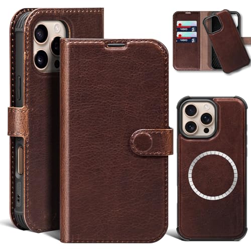 Thryxop Wallet Case for iPhone 16 Pro Max 6.9,Genuine Leather 2-in-1 Magnetic Detachable Shockproof Case,Flip Folio Cover with Card Slot, RFID Blocking,Dark Brown