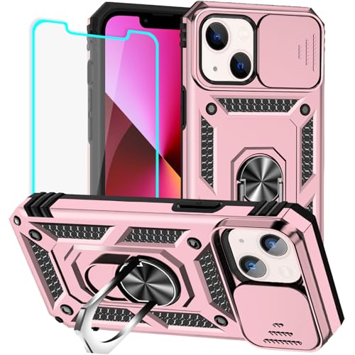 for iPhone 13 Case with HD Screen Protector: [Military Grade 20ft. Drop Tested] Slide Camera Cover Ring Shockproof Protective Phone Case for - iPhone 13 (Rose Gold)