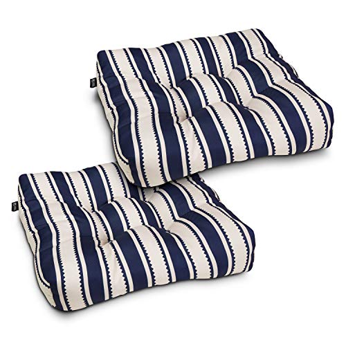 Patio Seat Cushion, 2 Pack, Classic Navy, Stripe, 19" W