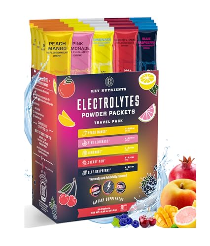 KEY NUTRIENTS Electrolytes Powder Packets 20 Pack - No Sugar, 5 Delicious Flavors, Hydration Packets with Electrolyte Powder for Refreshing Electrolyte Drink Mix Packets - Zero Calories