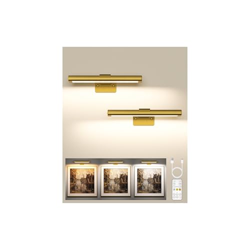 EZVALO Picture Light for Wall, Rechargeable 2400mAh Battery Lights Wireless Remote, 3 Color & Dimmable Magnetic 8'' LED Lights Display for Painting, Living Room, Gallery, Bedroom, Dashboard(Gold-2P)