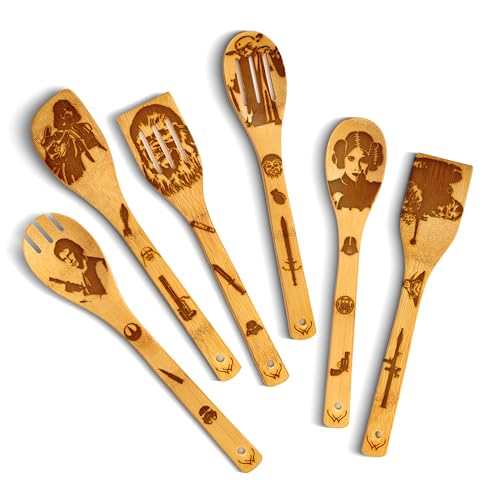 Star Warz gifts Wooden Spoons for Cooking for Space Wars Fans - Wooden Utensil Set with Spatulas & Spoons, Heat-Resistant, Eco-Friendly Kitchen Utensils for Non-Stick Cookware