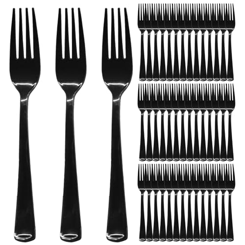 100 Pcs Black Plastic Forks, Black Plastic Silverware, Heavy Duty Plastic Cutlery Set Disposable Utensils Sets for Graduation Party Home Office School Restaurant