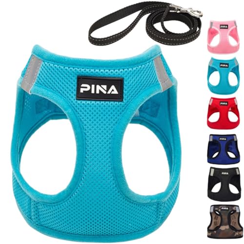 PINA Dog Harness and Leash Set for Small to Medium Dogs - No Pull, No Choke, Breathable Mesh Vest - Lightweight, Adjustable, Easy to Put On and Take Off