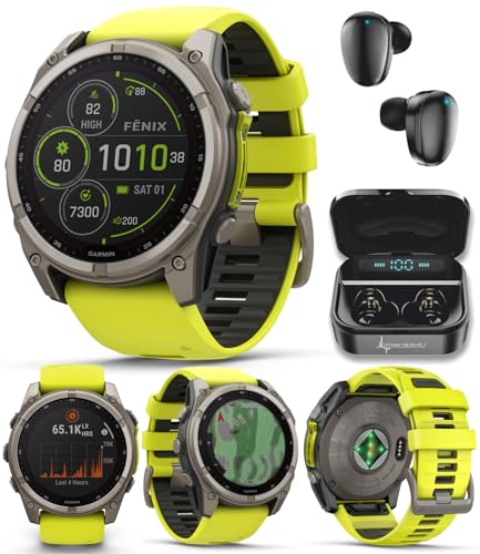 Wearable4U Garmin Fenix 8 – 51 mm, Solar, Sapphire Amp Yellow/Graphite Silicone GPS Smartwatch Black Earbuds Bundle