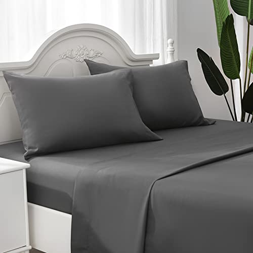 ILAVANDE Grey Sheets Set,Super Soft Microfiber Bed Sheets Set-Wrinkle Free & Breathable-14 Deep Pocket Queen Size Sheets (Dark Gray, Queen)