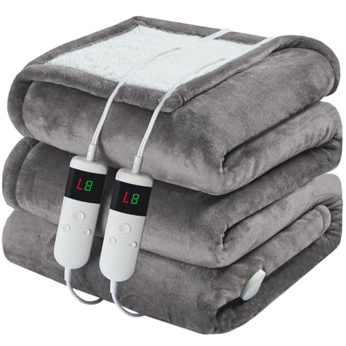 DANENOSA Electric Heated Blanket King Size 90''x100'' Soft Flannel & Sherpa Electric Blanket with 10 Heating Levels, Automatically Shut Down After 8h with Overheat Protection Machine Washable