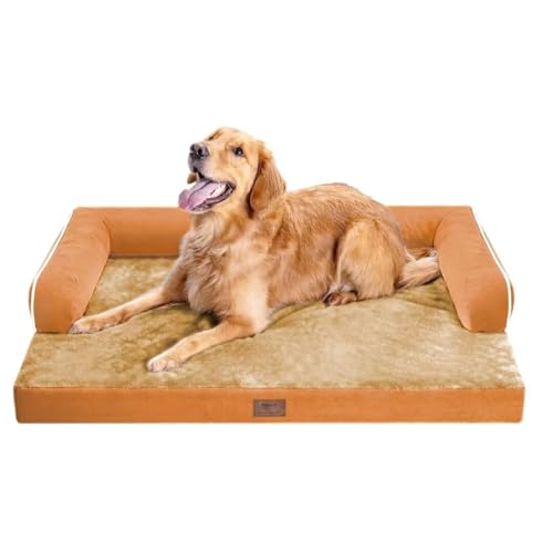 Large Dog Bed Orthopedic Washable - Couch Sofa - XL Large Big Dogs - Beds Bolster Pet - Memory Foam - Waterproof with Removable Cover - Ginger Yellow Dog Bed