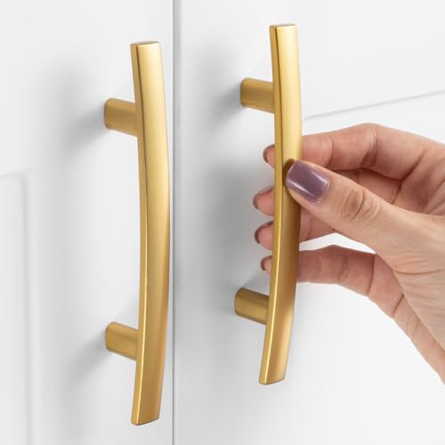 ASKANO 10 Pack 3 Inch Hole Centers, Curved Brushed Gold Cabinet Pulls Gold Cabinet Handles Gold Kitchen Hardware for Cabinets ZP2204 Drawers Bedroom Dresser Bathroom Vanity Cupboard Closet