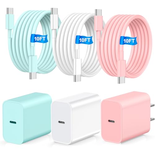 Compatible with iPhone 15 16 17 Charger Fast Charging 3+3Pack 20W USB C Wall Charger with 10FT Fast Charging Cable Compatible with i Phone 17/16/ Plus/Pro/Pro Max/Phone 15/Pro Max/i Pad Pro/AirPods