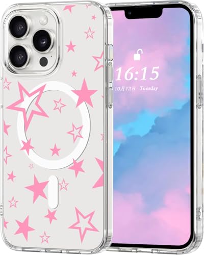 Houdqklee Magnetic Pink Star for iPhone 13/14 Case, Cute Kawaii Girly Star Phone Case Compatible with MagSafe, Clear Soft Slim Fit Protective Case for Women Girls for iPhone 13/14