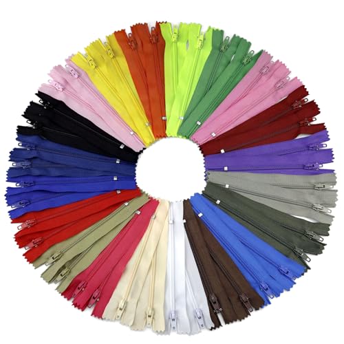 YZSIFRM Bulk Nylon Zippers for Sewing: 10 Pcs/80 Pcs Purses Zipper - Assorted Colors Zipper for Crafts (01 20 Mix Color, 10 inch/25.4cm)