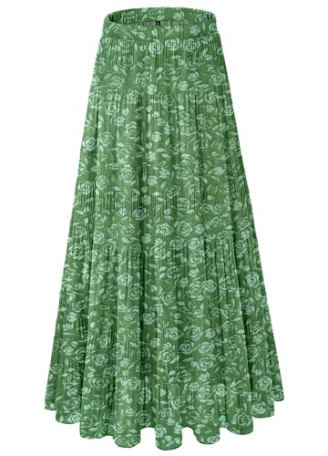 NiPaMi Women's Chiffon White Flowy Maxi Skirt Boho Fall Elastic Waisted Pleated A Line Long Skirts for Women 2025(Green Rose-71,2XL)