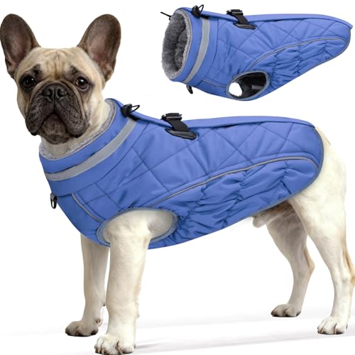 Yoochee Dog Coat, Warm Dog Winter Coat for Medium Dogs, Waterproof Jacket with Harness Built in, Reflective Turtleneck Cold Weather Coats with Zipper,Pet Fleece Vest Snow Jacket, Blue M