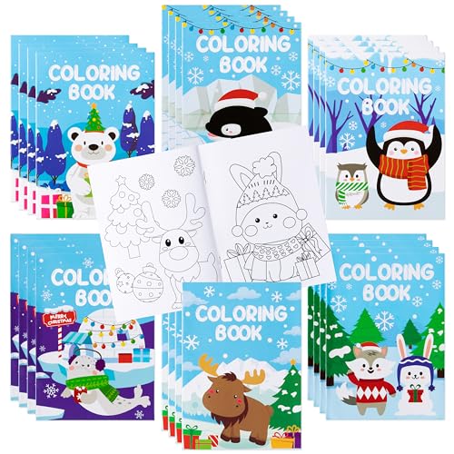 ANGOLIO 24Pcs Christmas Coloring Books Winter Coloring Book for Kids Bulk Polar Animals DIY Art Booklet Drawing Patterns Including Penguin Polar Bear Holiday Party Favor Gift School Supplies