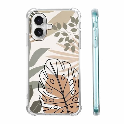 Hsondcn Case for iPhone 16 Plus with Green Leaves Design,Abstract Minimalist Plant Art Pattern,Soft TPU Bumper Phone Cover(16plus,Leaf)