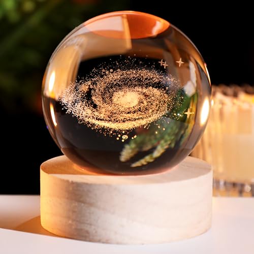 ZRENJHUS 3D Galaxy Crystal Ball Glass Space Decorative Ball 2.36" Science Astronomy Planet Decor Galaxy Glass Sphere Model with Colorful Lighted Base