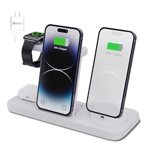 6-in-1 Fast Wireless Charging Station for iPhone 16/15/14/13, Apple Watch Ultra/9/8, AirPods Pro,18W Qi-Certified (with QC3.0 Adapter)