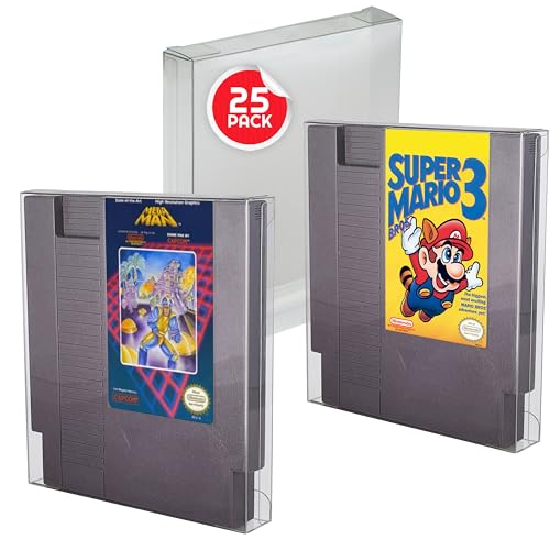 Video Game NES Classic Cartridge Protector Compatible with Nintendo NES Games Cart - 0.40MM PET Video Games Protector Compatible with Duck Hunt, Adventure Island, Mega Man, Punch Out (Pack of 25)