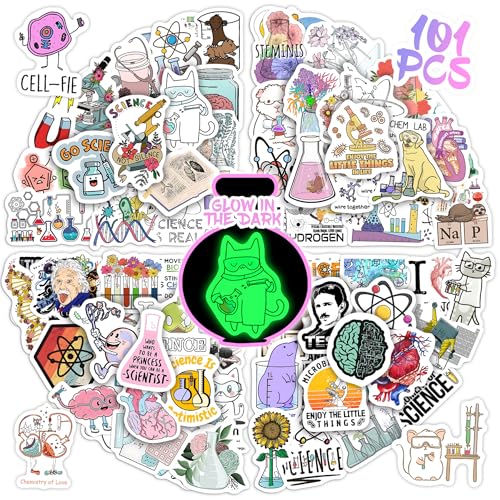 100Pcs Glow in The Dark Funny Natural Science Lab Stickers for Water Bottle, Physics Chemistry Biology Lab Vinyl Laptop Decals, Adults Teachers Students Waterproof Phone Case Skateboard Luggage Decor