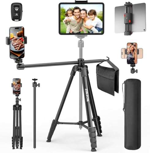 70" Phone Tripod & Selfie Stick, Horizontal Overhead Tripod, Extendable Camera Cell Phone Tripod Stand with Wireless Remote and phone Holder for Filming Video Recording Live Stream